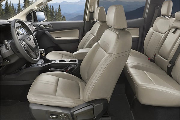 The 2023 Ford Ranger offers a comfortable and convenient interior design. The base XL includes one USB port, a 3.5-inch center display, an auto-dimming rearview mirror, a four-speaker sound system, and a Wi-Fi hotspot. Optional features include dual-zone automatic climate control, a larger Sync 3 infotainment display with Apple CarPlay and Android Auto, keyless entry, and a six-speaker stereo.