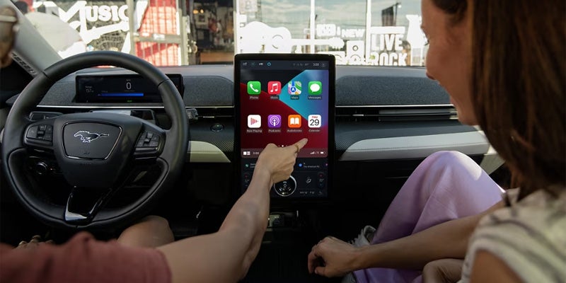 Step inside the Mach-E's modern and spacious interior, where comfort meets technology. The cabin features premium materials and innovative amenities, including an intuitive SYNC® infotainment system with a large touchscreen display. With available features like a panoramic glass roof and heated seats, the Mach-E offers a luxurious and connected driving environment for you and your passengers.