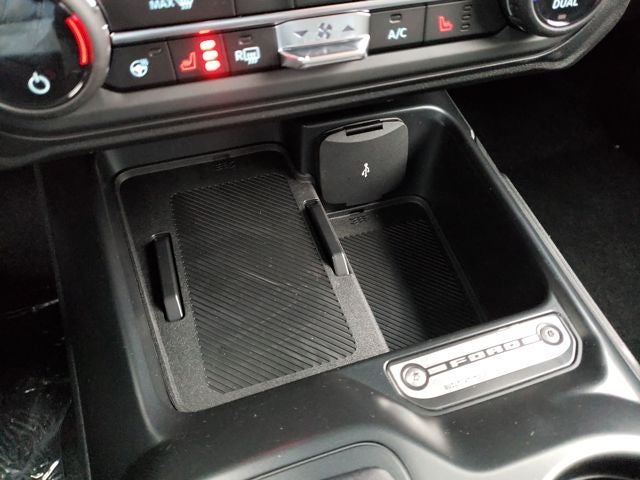 18 Bright Machined Aluminum Wheels, 3.73 Axle Ratio, 4-Wheel Disc Brakes, 7 Speakers, ABS brakes, Air Conditioning, Alloy wheels, AM/FM radio: SiriusXM with 360L, AM/FM Stereo, Auto High-beam Headlights, Auto-dimming Rear-View mirror, Automatic temperature control, Black Appearance Package, Black Molded-In-Color Door Handles, Black Molded-In-Color Fender Flares, Black Molded-In-Color Sideview Mirror Caps, Black-Painted Molded-In-Color Grille, Brake assist, Compass, Connected Navigation, Delay-off headlights, Driver door bin, Driver vanity mirror, Dual front impact airbags, Dual front side impact airbags, Electronic Stability Control, Emergency communication system: 911 Assist, Equipment Group 312A Mid Package, Exterior Parking Camera Rear, Front & Rear Floor Liners w/o Carpet Floor Mats, Front anti-roll bar, Front Bucket Seats, Front Center Armrest, Front dual zone A/C, Front fog lights, Front reading lights, Front wheel independent suspension, Fully automatic headlights, Hard Top Sound Deadening Headliner, Heated door mirrors, Heated front seats, Heated Leather-Trimmed/Vinyl Bucket Seats, Heated steering wheel, Illuminated entry, Integrated roll-over protection, Internet access capable: FordPass Connect, Leather Shift Knob, Low tire pressure warning, Navigation system: Connected Navigation, Occupant sensing airbag, Outside temperature display, Overhead airbag, Overhead console, Panic alarm, Passenger door bin, Passenger vanity mirror, Power door mirrors, Power driver seat, Power passenger seat, Power steering, Power windows, Radio data system, Rear seat center armrest, Rear-Window Defroster & Washer, Remote keyless entry, Security system, Shadow Black-Painted Hard Top, SiriusXM w/360L, Speed control, Split folding rear seat, Steering wheel mounted audio controls, SYNC 4, Tachometer, Telescoping steering wheel, Tilt steering wheel, Traction control, Trip computer, Variably intermittent wipers, Voltmeter.