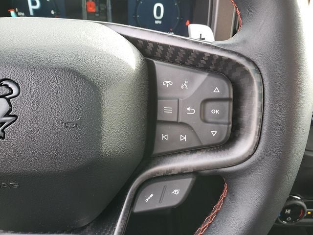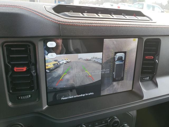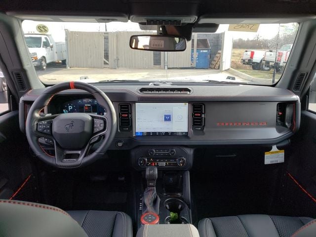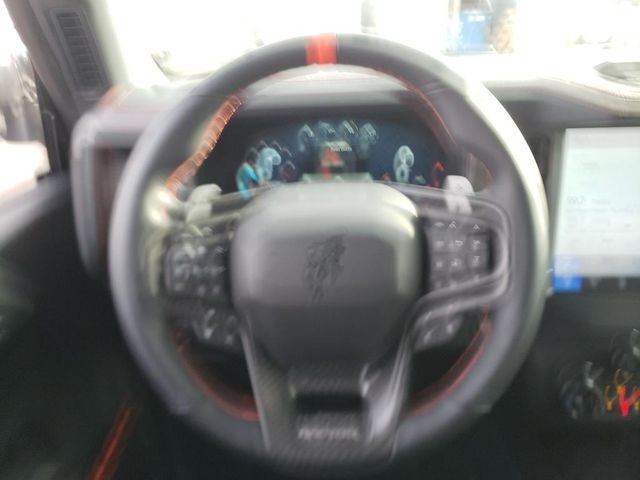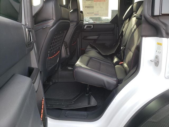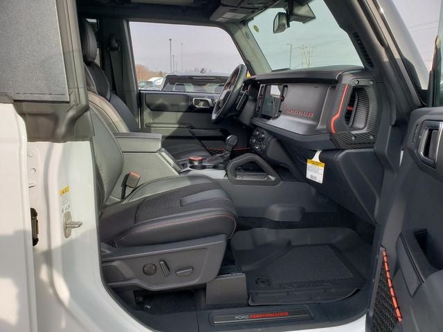 12 Speakers, 4-Wheel Disc Brakes, ABS brakes, Air Conditioning, Alloy wheels, AM/FM radio: SiriusXM with 360L, Auto High-beam Headlights, Auto-dimming Rear-View mirror, Automatic temperature control, Black Appearance Raptor Side Graphic, Brake assist, Bronco-Branded Console Cupholder, Compass, Connected Navigation, Convertible HardTop, Convertible roof lining, Delay-off headlights, Driver door bin, Driver vanity mirror, Dual front impact airbags, Dual front side impact airbags, Electronic Stability Control, Emergency communication system: 911 Assist, Equipment Group 374A Lux Package, Exterior Parking Camera Rear, Ford Integrated Tether System (FITS) Accessory Pkg, Front anti-roll bar, Front Bucket Seats, Front Center Armrest, Front dual zone A/C, Front fog lights, Front reading lights, Front wheel independent suspension, Fully automatic headlights, Garage door transmitter, Glass rear window, Gloss Black Sideview Mirror Skull Caps, Hard Top Sound Deadening Headliner, Heated door mirrors, Heated front seats, Heated steering wheel, Illuminated entry, Integrated roll-over protection, Interior Carbon Fiber Pack, Internet access capable: FordPass Connect, Leather Shift Knob, Leather-Trimmed/Vinyl Bucket Seats, Low Gloss Black High Coverage Fender Flares, Low tire pressure warning, Marine Grade Vinyl Bucket Seats, Navigation system: Connected Navigation, Occupant sensing airbag, Outside temperature display, Overhead airbag, Overhead console, Panic alarm, Passenger door bin, Passenger vanity mirror, Power door mirrors, Power steering, Power windows, Radio data system, Radio: B&O Sound System by Bang & Olufsen, Raptor Black Appearance Package, Rear anti-roll bar, Rear seat center armrest, Rear window defroster, Rear window wiper, Rear-Window Defroster & Washer, Remote keyless entry, Security system, Shadow Black Painted Hard Top, SiriusXM w/360L, Speed control, Split folding rear seat, Steering wheel mounted audio controls, SYNC 4, Tachometer, Telescoping steering wheel, Tilt steering wheel, Traction control, Trip computer, Turn signal indicator mirrors, Variably intermittent wipers, Voltmeter, Wheels: 17 Black High Gloss-Painted Aluminum, Wheels: 17 Dark Carbonized Gray Alloy Painted.