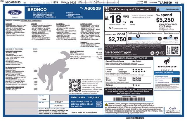- Vehicle Name: Ford Bronco