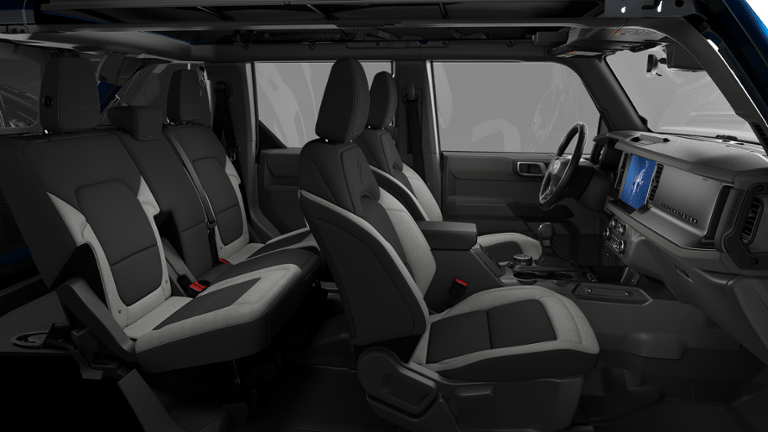 4-Wheel Disc Brakes, 4.46 Axle Ratio, 7 Speakers, ABS brakes, Air Conditioning, Alloy wheels, AM/FM radio: SiriusXM with 360L, AM/FM Stereo, Auto High-beam Headlights, Black Appearance Package, Black Molded-in-Color Door Handles, Black Molded-in-Color Fender Flares, Black Molded-in-Color Sideview Mirror Caps, Black-Painted Molded-in-Color Grille, Brake assist, Cloth Bucket Seats, Compass, Delay-off headlights, Driver door bin, Driver vanity mirror, Dual front impact airbags, Dual front side impact airbags, Electronic Stability Control, Emergency communication system: 911 Assist, Engine Block Heater, Exterior Parking Camera Rear, Ford Connectivity Package (1-Year Included), Front and Rear Floor Liners Without Carpet Floor Mats, Front anti-roll bar, Front Bucket Seats, Front Center Armrest, Front reading lights, Front wheel independent suspension, Fully automatic headlights, Hard Top Sound Deadening Headliner, Heated door mirrors, Illuminated entry, Integrated roll-over protection, Low tire pressure warning, Occupant sensing airbag, Outside temperature display, Overhead airbag, Overhead console, Panic alarm, Passenger door bin, Passenger vanity mirror, Power door mirrors, Power steering, Power windows, Radio data system, Rear-Window Defroster and Washer, Remote keyless entry, Security system, Shadow Black Painted Hard Top, Side Step, SiriusXM with 360L, Speed control, Split folding rear seat, Steering wheel mounted audio controls, SYNC 4, Tachometer, Telescoping steering wheel, Tilt steering wheel, Traction control, Trip computer, Variably intermittent wipers, Wheels: 17 Carbonized Gray-Painted Aluminum.