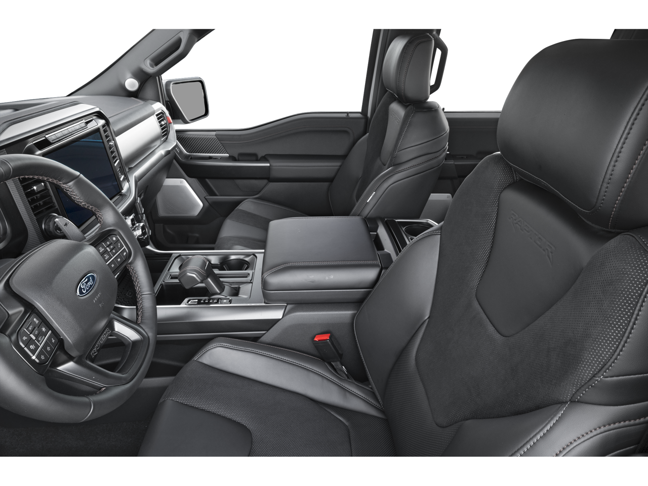 F-150 Raptor, 4D SuperCrew, 3.5L V6 EcoBoost High Output, 10-Speed Automatic, 4WD, Agate Black Metallic, 5b Leather, 14 Speakers, 17 Cast Aluminum Wheels, 4-Wheel Disc Brakes, ABS brakes, Adjustable pedals, Air Conditioning, Alloy wheels, AM/FM radio: SiriusXM with 360L, Auto High-beam Headlights, Auto tilt-away steering wheel, Auto-dimming door mirrors, Auto-dimming Rear-View mirror, Automatic temperature control, Brake assist, Bumpers: body-color, Compass, Delay-off headlights, Driver door bin, Driver vanity mirror, Dual front impact airbags, Dual front side impact airbags, Electronic Locking with 4.10 Axle Ratio, Electronic Stability Control, Emergency communication system: SYNC 4 911 Assist, Ford Connectivity Package (1-Year Included), Front anti-roll bar, Front Bucket Seats, Front Center Armrest, Front dual zone A/C, Front fog lights, Front reading lights, Front wheel independent suspension, Fully automatic headlights, Garage door transmitter, Heated door mirrors, Heated front seats, Heated rear seats, Heated steering wheel, Illuminated entry, Internet access capable: 5G Modem - Ford Connectivity Package, Lane Departure Warning System, Leather steering wheel, Leather Trimmed Seats, Low tire pressure warning, Memory seat, Navigation system: Connected Navigation, Occupant sensing airbag, Outside temperature display, Overhead airbag, Overhead console, Panic alarm, Passenger door bin, Passenger vanity mirror, Pedal memory, Power door mirrors, Power driver seat, Power passenger seat, Power steering, Power windows, Radio data system, Radio: B&O Unleashed Sound System by Bang & Olufsen, Rain sensing wipers, Rear reading lights, Rear step bumper, Rear window defroster, Remote keyless entry, Security system, Speed control, Speed-sensing steering, Split folding rear seat, Steering wheel memory, Steering wheel mounted audio controls, SYNC 4 with Enhanced Voice Recognition, Tachometer, Telescoping steering wheel, Tilt steering wheel, Traction control, Trip computer, Turn signal indicator mirrors, Variably intermittent wipers, Ventilated front seats, F-150 Raptor, 4D SuperCrew, 3.5L V6 EcoBoost High Output, 10-Speed Automatic, 4WD, Agate Black Metallic, 5b Leather.