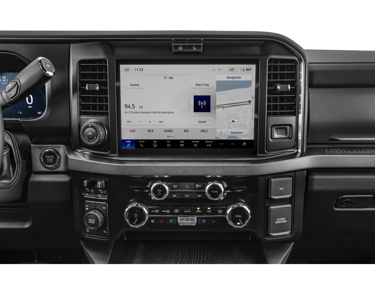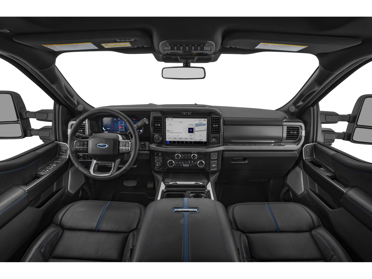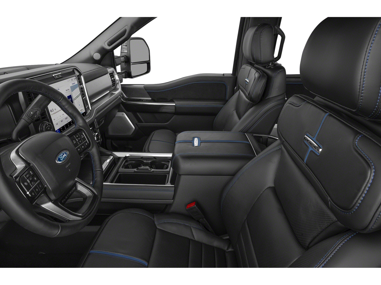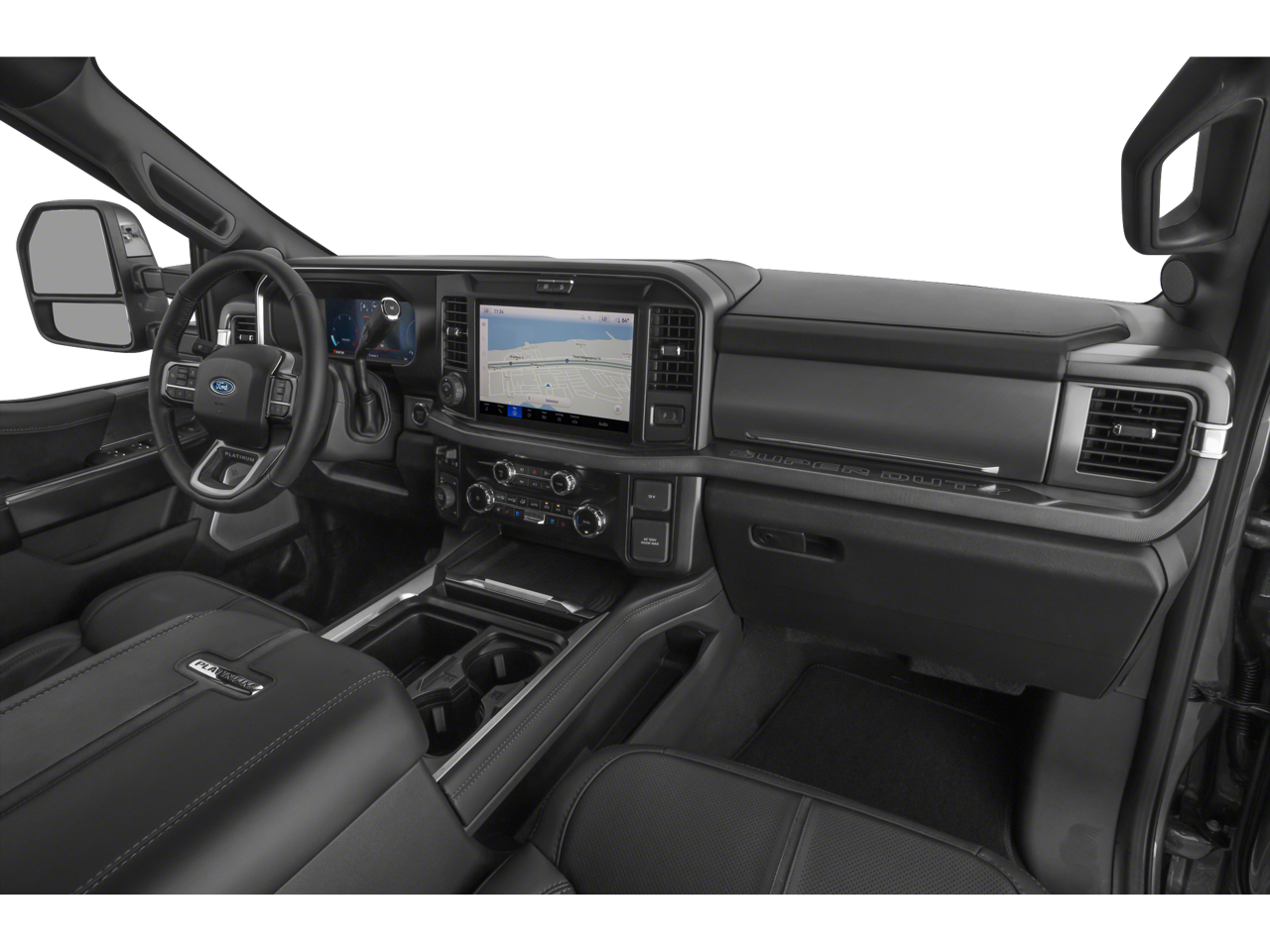 4WD, 14 Speakers, 4-Wheel Disc Brakes, 410 Amp Dual Alternators, ABS brakes, Adjustable pedals, Air Conditioning, All-Weather Floor Mats, Alloy wheels, AM/FM radio: SiriusXM with 360L, Auto High-beam Headlights, Auto tilt-away steering wheel, Auto-dimming Rear-View mirror, Automatic temperature control, Brake assist, Bumpers: body-color, Compass, Delay-off headlights, Driver door bin, Driver vanity mirror, Dual front impact airbags, Dual front side impact airbags, Electronic Stability Control, Electronic-Locking with 3.73 Axle Ratio, Emergency communication system: SYNC 4 911 Assist, Flow-Through Console, Ford Connectivity Package (1-Year Included), Front and Rear Wheel Well Liners, Front anti-roll bar, Front Bucket Seats, Front Center Armrest, Front dual zone A/C, Front fog lights, Front reading lights, Fully automatic headlights, Garage door transmitter, Heads-Up Display, Heated door mirrors, Heated front seats, Heated rear seats, Heated steering wheel, Illuminated entry, Internet access capable: 5G Modem - Ford Connectivity Package, Leather steering wheel, LED Roof Clearance Lights, Low tire pressure warning, Memory seat, Navigation system: Connected Navigation, Order Code 713A, Outside temperature display, Overhead airbag, Overhead console, Panic alarm, Passenger door bin, Passenger vanity mirror, Pedal memory, Power door mirrors, Power driver seat, Power passenger seat, Power steering, Power windows, Radio: B&O Unleashed Sound System by Bang & Olufsen, Rain sensing wipers, Rear reading lights, Rear seat center armrest, Rear step bumper, Rear window defroster, Remote keyless entry, SecuriCode Keyless Entry Keypad (driver's Side), Security system, SiriusXM with 360L, Snow Plow Prep Package, Speed control, Split folding rear seat, Steering wheel memory, Steering wheel mounted A/C controls, Steering wheel mounted audio controls, SYNC 4 with Enhanced Voice Recognition, Tachometer, Telescoping steering wheel, Tilt steering wheel, Tough Bed Spray-in Bedliner, Traction control, Trip computer, Turn signal indicator mirrors, Unique Platinum Leather 40/Console/40 Seats, Upfitter Switches (6), Variably intermittent wipers, Ventilated front seats, Wheels: 20 Bright Machined and Painted Aluminum, 4WD. Recent Arrival!