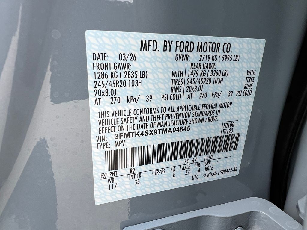 10 Speakers, 1st and 2nd Row Floor Liners Without Carpet Mats, 4-Wheel Disc Brakes, ABS brakes, Air Conditioning, Alloy wheels, AM/FM radio: SiriusXM with 360L, Apple CarPlay/Android Auto, Audio and Video Streaming, Auto High-beam Headlights, Auto-dimming Rear-View mirror, Automatic temperature control, Brake assist, Bumpers: body-color, Cargo Area Cover, Cargo Floor Liner, Compass, Connected Navigation, Delay-off headlights, Driver door bin, Driver vanity mirror, Dual front impact airbags, Dual front side impact airbags, Electronic Stability Control, Emergency communication system: 911 Assist, Equipment Group 400A Standard Package, Exterior Parking Camera Rear, Ford Connectivity Package (one-Time Purchase - 7 Years), Four wheel independent suspension, Front anti-roll bar, Front Bucket Seats, Front Center Armrest, Front dual zone A/C, Front reading lights, Fully automatic headlights, Garage door transmitter, GT Performance and Handling Package, Heated door mirrors, Heated front seats, Heated Perforated ActiveX Performance Seats, Heated steering wheel, Illuminated entry, Interior Protection Package, Knee airbag, Low tire pressure warning, Memory seat, Mobile Power Cord (120V/240V), Mustang Mach-E Gt Performance Upgrade, NACS Fast Charging Adapter, Navigation system: Connected Navigation, Occupant sensing airbag, Outside temperature display, Overhead airbag, Overhead console, Panic alarm, Panoramic Fixed-Glass Roof Package, Passenger door bin, Passenger vanity mirror, Power door mirrors, Power driver seat, Power Liftgate, Power passenger seat, Power steering, Power windows, Radio data system, Radio: B&O Sound System by Bang and Olufsen, Rain sensing wipers, Rear anti-roll bar, Rear seat center armrest, Rear side impact airbag, Rear window defroster, Rear window wiper, Remote keyless entry, Security system, SiriusXM with 360L, Speed control, Speed-sensing steering, Speed-Sensitive Wipers, Split folding rear seat, Spoiler, Steering wheel mounted audio controls, SYNC 4A with Enhanced Voice Recognition, Telescoping steering wheel, Tilt steering wheel, Tire Inflator and Sealant Kit, Traction control, Trip computer, Turn signal indicator mirrors, Variably intermittent wipers, Wheels: 20 Monochromatic High Gloss Black-Painted.