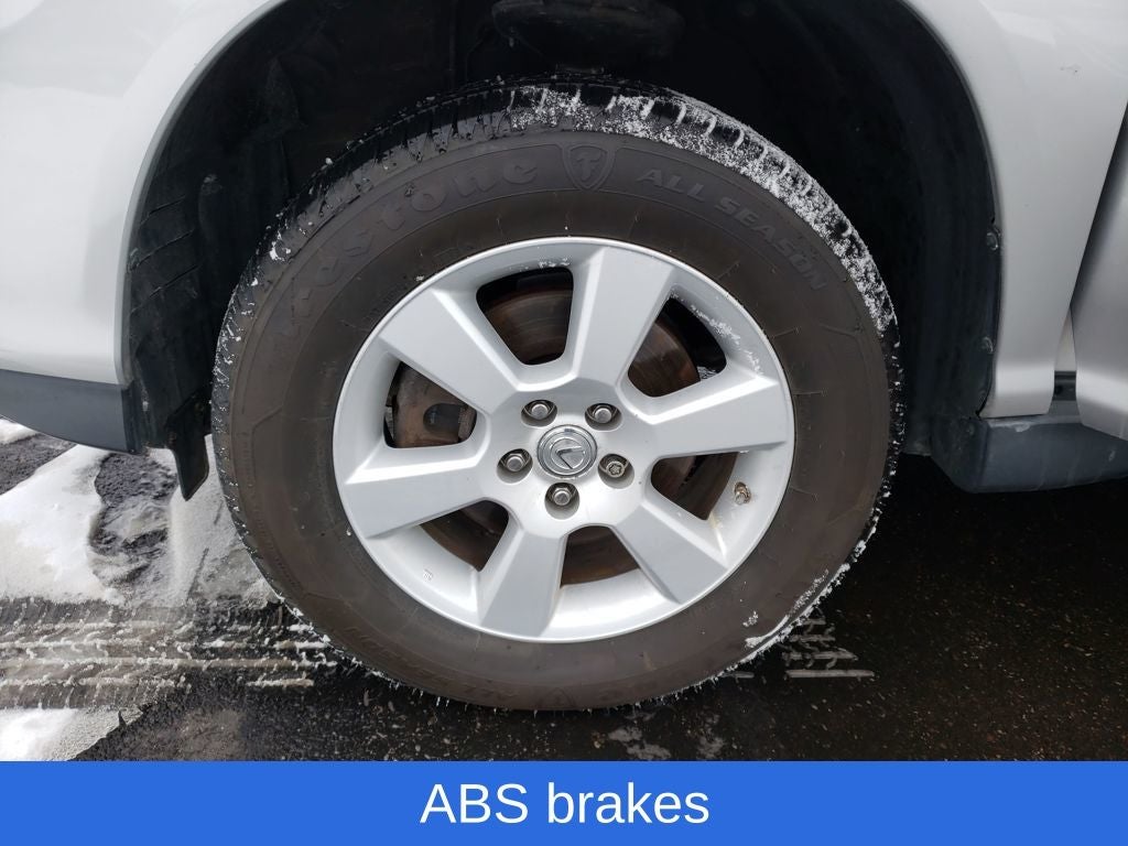 Classic Silver Metallic 2009 Lexus RX 350 AWD 5-Speed Automatic with Overdrive 3.5L V6 Dual VVT-i RX 350, 4D Sport Utility, 3.5L V6 Dual VVT-i, 5-Speed Automatic with Overdrive, AWD, Classic Silver Metallic, Black w/Leather Seat Trim, 17 x 6.5 Alloy Wheels, 3.291 Axle Ratio, 4-Wheel Disc Brakes, 8 Speakers, ABS brakes, Air Conditioning, Alloy wheels, AM/FM radio, Auto-dimming door mirrors, Auto-dimming Rear-View mirror, Automatic temperature control, Bodyside moldings, Brake assist, Bucket Seats, Bumpers: body-color, CD player, Compass, Delay-off headlights, Driver door bin, Driver vanity mirror, Driver's Seat Mounted Armrest, Dual front impact airbags, Dual front side impact airbags, Electronic Stability Control, Fabric Seat Trim, Four wheel independent suspension, Front anti-roll bar, Front Bucket Seats, Front dual zone A/C, Front fog lights, Front reading lights, Fully automatic headlights, Garage door transmitter: HomeLink(R), Genuine wood console insert, Genuine wood door panel insert, Heated door mirrors, Illuminated entry, Knee airbag, Leather Shift Knob, Leather steering wheel, Low tire pressure warning, Occupant sensing airbag, Outside temperature display, Overhead airbag, Overhead console, Panic alarm, Passenger door bin, Passenger seat mounted armrest, Passenger vanity mirror, Power door mirrors, Power driver seat, Power Liftgate, Power passenger seat, Power steering, Power windows, Radio data system, Rear anti-roll bar, Rear seat center armrest, Rear window defroster, Rear window wiper, Remote keyless entry, Security system, Speed control, Speed-sensing steering, Split folding rear seat, Spoiler, Steering wheel mounted audio controls, Tachometer, Tilt steering wheel, Traction control, Trip computer, Variably intermittent wipers.