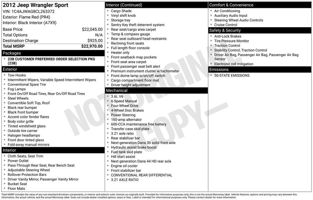 Flame Red Clearcoat 2012 Jeep Wrangler Sport
