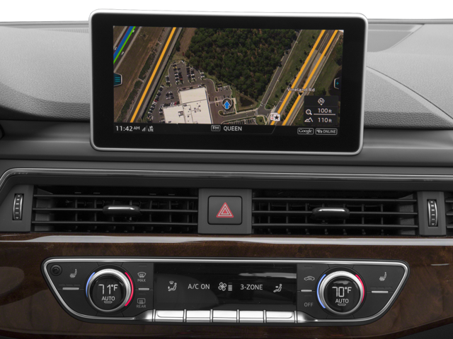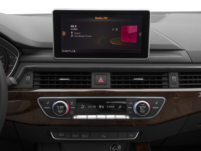 Equipped with Convenience Package (Anti-Theft Alarm System w/Immobilizer, Audi Advanced Key, Color Driver Information System w/Trip Computer, Driver Memory, Heated Auto-Dimming Power Ext Mirrors w/Memory, and SiriusXM Satellite Radio), 7-Speed Automatic S tronic, quattro, Brown Leather, 10 Speakers, 4-Wheel Disc Brakes, ABS brakes, Air Conditioning, Alloy wheels, AM/FM radio, Anti-whiplash front head restraints, Audi Guard All-Weather Floor Mats, Audi Guard Wheel Lock Kit, Audi smartphone interface (Apple CarPlay/Android Auto), Auto-dimming Rear-View mirror, Automatic temperature control, Brake assist, Bumpers: body-color, Compass, Dark Brown Walnut High Gloss Inlays, Delay-off headlights, Driver door bin, Driver vanity mirror, Dual front impact airbags, Dual front side impact airbags, Electronic Stability Control, Exterior Parking Camera Rear, Four wheel independent suspension, Front anti-roll bar, Front Bucket Seats, Front Center Armrest, Front dual zone A/C, Front fog lights, Front reading lights, Garage door transmitter: HomeLink, Heated 3-Step Front Bucket Seats, Heated door mirrors, Heated front seats, High intensity discharge headlights: Xenon plus, Illuminated entry, Knee airbag, Leather Seating Surfaces, Leather Shift Knob, Leather steering wheel, Low tire pressure warning, Occupant sensing airbag, Outside temperature display, Overhead airbag, Overhead console, Panic alarm, Passenger door bin, Passenger vanity mirror, Power door mirrors, Power driver seat, Power moonroof, Power passenger seat, Power steering, Power windows, Radio data system, Radio: Audi MMI Navigation Plus w/MMI Touch, Radio: Audi Sound System, Rain sensing wipers, Rear air conditioning, Rear anti-roll bar, Rear fog lights, Rear reading lights, Rear seat center armrest, Rear window defroster, Remote CD player, Remote keyless entry, Speed control, Speed-sensing steering, Speed-Sensitive Wipers, Split folding rear seat, Steering wheel mounted audio controls, Tachometer, Telescoping steering wheel, Tilt steering wheel, Traction control, Trip computer, Turn signal indicator mirrors, Variably intermittent wipers, and Wheels: 7.5 x 17 5-Spoke-Y Design.