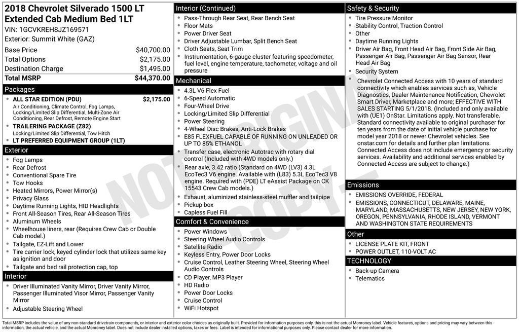Summit White 2018 Chevrolet Silverado 1500 LT LT1 Odometer is 4475 miles below market average!