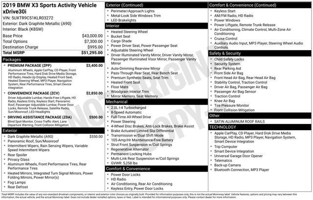 AWD, Advanced Real-Time Traffic Information, Apple CarPlay Compatibility, Convenience Package, Head-Up Display, Heated Front Seats, Heated Steering Wheel, LED Headlights w/Cornering Lights, Lumbar Support, Navigation System, Panoramic Moonroof, Premium Package, Remote Services, SiriusXM Satellite Radio, Wheels: 19 x 7.5 (Style 692). Recent Arrival!