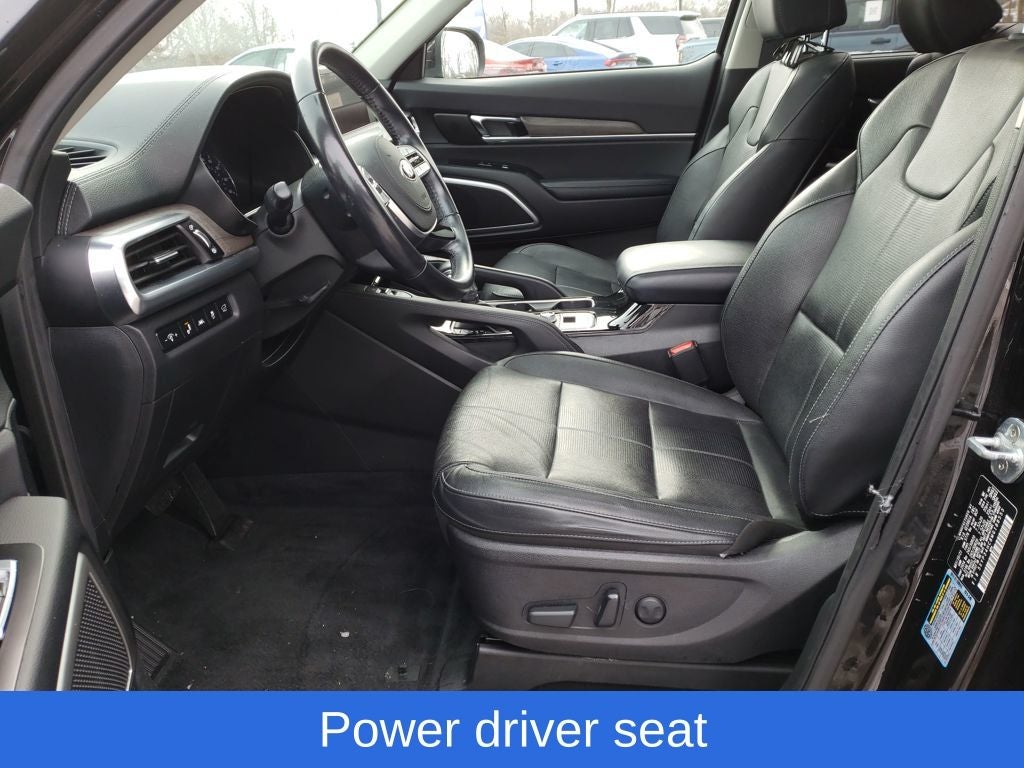 The spacious and versatile interior of the Telluride EX offers seating for up to 8 passengers, with the added convenience of 2nd Row Captain Chairs and a Power Liftgate. The premium leather-wrapped steering wheel and shift knob, along with the heated and ventilated front bucket seats, provide a luxurious touch to the cabin.