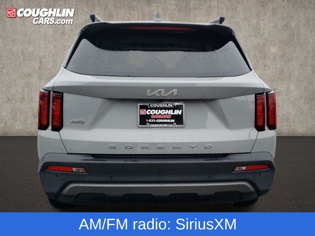 Wolf Gray 2022 Kia Sorento S AWD 8-Speed Automatic 2.5L I4 DGI DOHC 16V LEV3-ULEV70 191hp Sorento S, 4D Sport Utility, 2.5L I4 DGI DOHC 16V LEV3-ULEV70 191hp, 8-Speed Automatic, AWD, Wolf Gray, Grey Artificial Leather, 3rd row seats: split-bench, 4-Wheel Disc Brakes, 4.081 Axle Ratio, 6 Speakers, ABS brakes, Air Conditioning, Alloy wheels, AM/FM radio: SiriusXM, Apple CarPlay & Android Auto, Auto High-beam Headlights, Automatic temperature control, Brake assist, Bumpers: body-color, Cargo Net, Carpeted Floor Mats, Delay-off headlights, Driver door bin, Driver vanity mirror, Dual front impact airbags, Dual front side impact airbags, Electronic Stability Control, Emergency communication system: UVO Link, Exterior Parking Camera Rear, Four wheel independent suspension, Front anti-roll bar, Front Bucket Seats, Front Center Armrest, Front dual zone A/C, Front reading lights, Fully automatic headlights, Heated door mirrors, Heated Front Bucket Seats, Heated front seats, Illuminated entry, Illuminated Hatch Sill Plate, Interior Lighting Kit, Knee airbag, Leather Shift Knob, Leather steering wheel, LED Interior Lighting, Low tire pressure warning, Mudguards, Navigation System, Occupant sensing airbag, Outside temperature display, Overhead airbag, Overhead console, Panic alarm, Panoramic Sunroof Package, Passenger door bin, Passenger vanity mirror, Power door mirrors, Power driver seat, Power steering, Power Sunroof w/Power Sunshade, Power windows, Radio data system, Radio: AM/FM Audio System, Rear air conditioning, Rear anti-roll bar, Rear reading lights, Rear seat center armrest, Rear window defroster, Rear window wiper, Remote keyless entry, Roof rack: rails only, Security system, Smart Key w/ Push Button and Remote Start, Speed control, Speed-sensing steering, Split folding rear seat, Spoiler, Steering wheel mounted audio controls, SynTex Artificial Leather Seat Trim, Tachometer, Telescoping steering wheel, Tilt steering wheel, Traction control, Trip computer, Turn signal indicator mirrors, Variably intermittent wipers, Wheels: 7.5J x 18 Gloss Black Alloy.