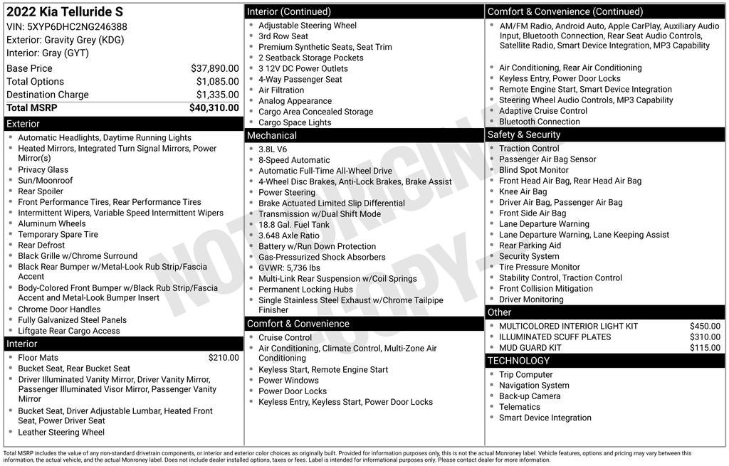 - Vehicle Name: Kia Telluride