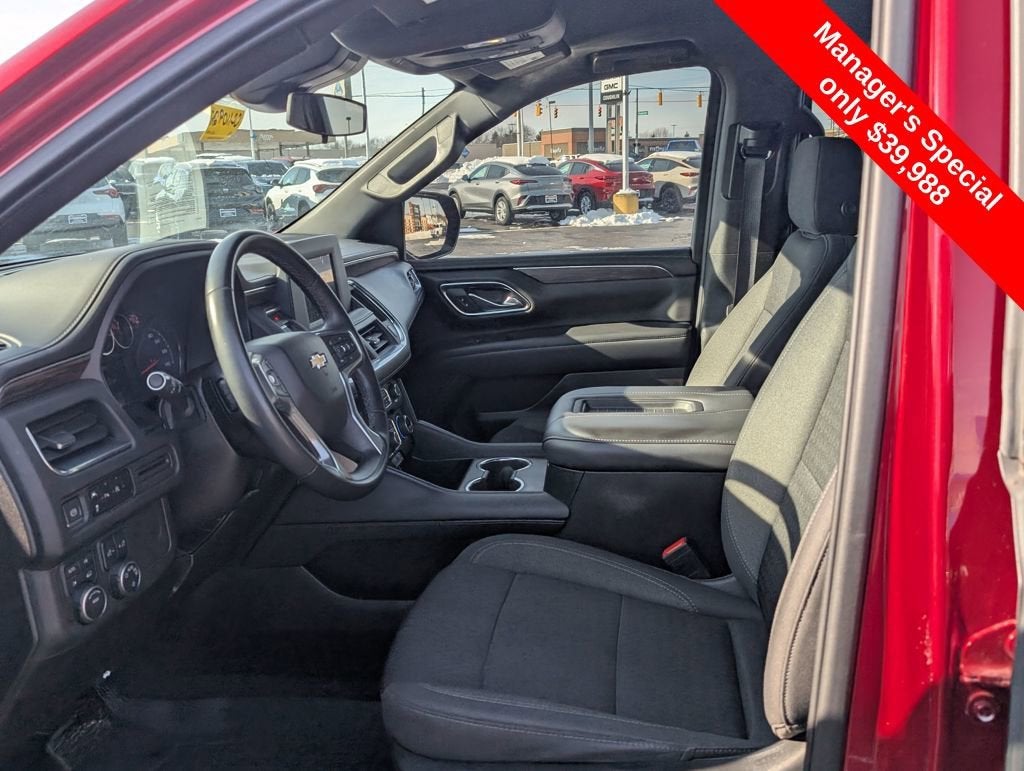 Climb inside and be greeted by the Tahoe's premium cloth seats, providing both comfort and style. The infotainment system with Apple CarPlay and Android Auto integration keeps you connected and entertained, while the driver-centric controls and steering wheel-mounted audio buttons ensure a seamless and intuitive driving experience.