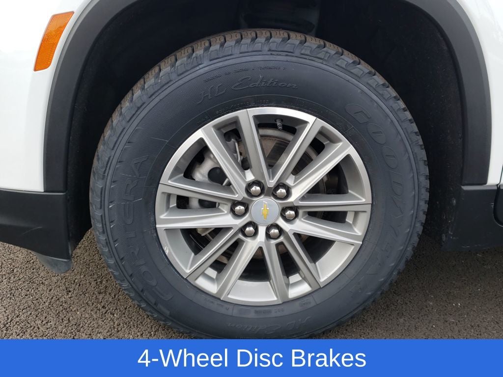 Summit White 2023 Chevrolet Traverse LT 1LT FWD 9-Speed Automatic 3.6L V6 SIDI VVT 2-Way Manual Front Passenger Seat Adjuster, 3.49 Axle Ratio, 3rd row seats: split-bench, 4-Wheel Disc Brakes, 4.2 Multi-Color Enhanced Driver Instrument Display, 6 Speakers, 6-Speaker Audio System Feature, 8-Way Power Driver Seat Adjuster, ABS brakes, Air Conditioning, Alloy wheels, AM/FM radio: SiriusXM, Apple CarPlay/Android Auto, Auto High-beam Headlights, Automatic temperature control, Black Roof Rails, Brake assist, Bumpers: body-color, Compass, Convenience & Driver Confidence Package, Delay-off headlights, Driver door bin, Driver vanity mirror, Dual front impact airbags, Dual front side impact airbags, Electronic Stability Control, Emergency communication system, Exterior Parking Camera Rear, Four wheel independent suspension, Front anti-roll bar, Front Bucket Seats, Front Center Armrest, Front dual zone A/C, Front reading lights, Fully automatic headlights, Heated door mirrors, Heated Driver & Front Passenger Seats, Illuminated entry, Leather steering wheel, Low tire pressure warning, Occupant sensing airbag, Outside temperature display, Overhead airbag, Overhead console, Panic alarm, Passenger door bin, Passenger vanity mirror, Power door mirrors, Power Driver Lumbar Control, Power driver seat, Power steering, Power windows, Preferred Equipment Group 1LT, Premium Cloth Seat Trim, Radio data system, Radio: Chevrolet Infotainment 3 Plus System, Radio: Chevrolet Infotainment System AM/FM Stereo, Rear air conditioning, Rear anti-roll bar, Rear Power Liftgate, Rear reading lights, Rear window defroster, Rear window wiper, Remote keyless entry, Remote Start, Security system, SiriusXM Radio, SiriusXM w/360L, Speed control, Speed-sensing steering, Spoiler, Steering wheel mounted audio controls, Tachometer, Telescoping steering wheel, Tilt steering wheel, Traction control, Trip computer, Turn signal indicator mirrors, Universal Home Remote, Variably intermittent wipers, Voltmeter, Wheels: 18 Bright Silver-Painted Aluminum.