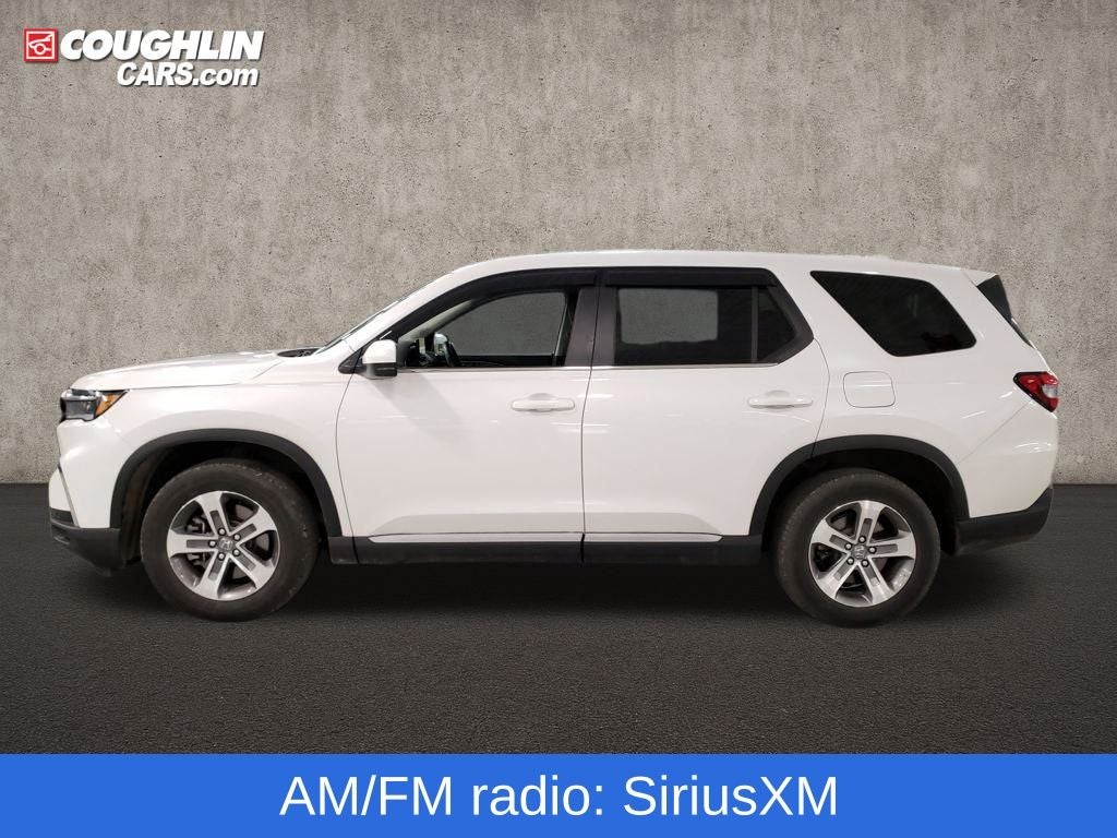 Platinum White Pearl 2023 Honda Pilot EX-L 7 Passenger AWD 10-Speed Automatic 3.5L V6 DOHC 24V Pilot EX-L 7 Passenger, 4D Sport Utility, 3.5L V6 DOHC 24V, 10-Speed Automatic, AWD, Platinum White Pearl, Black w/Leather Seat Trim, 3rd row seats: split-bench, 4-Wheel Disc Brakes, 9 Speakers, ABS brakes, Adaptive Cruise Control: Adaptive Cruise Control (ACC) with Low-Speed Follow, Air Conditioning, Alloy wheels, AM/FM radio: SiriusXM, Apple CarPlay/Android Auto, Auto High-beam Headlights, Auto-dimming Rear-View mirror, Automatic temperature control, Axle Ratio: 4.167, Blind Spot Information (BSI) System warning, Brake assist, Delay-off headlights, Driver vanity mirror, Dual front impact airbags, Dual front side impact airbags, Electronic Stability Control, Emergency communication system: HondaLink Assist, Four wheel independent suspension, Front anti-roll bar, Front Center Armrest, Front dual zone A/C, Front fog lights, Front reading lights, Fully automatic headlights, Garage door transmitter: HomeLink, Heated door mirrors, Heated Front Bucket Seats, Heated front seats, Knee airbag, Lane departure: Lane Keeping Assist System (LKAS) active, Leather Seat Trim, Low tire pressure warning, Memory seat, Occupant sensing airbag, Outside temperature display, Overhead airbag, Overhead console, Panic alarm, Passenger door bin, Passenger vanity mirror, Power door mirrors, Power driver seat, Power Liftgate, Power passenger seat, Power steering, Power windows, Radio data system, Radio: 245-Watt Audio System, Rear air conditioning, Rear anti-roll bar, Rear reading lights, Rear window defroster, Rear window wiper, Reclining 3rd row seat, Remote keyless entry, Security system, Speed control, Speed-sensing steering, Speed-Sensitive Wipers, Split folding rear seat, Spoiler, Steering wheel mounted audio controls, Tachometer, Telescoping steering wheel, Tilt steering wheel, Traction control, Trip computer, Turn signal indicator mirrors, Variably intermittent wipers, Wheels: 18 Machined Face Pewter Gray.