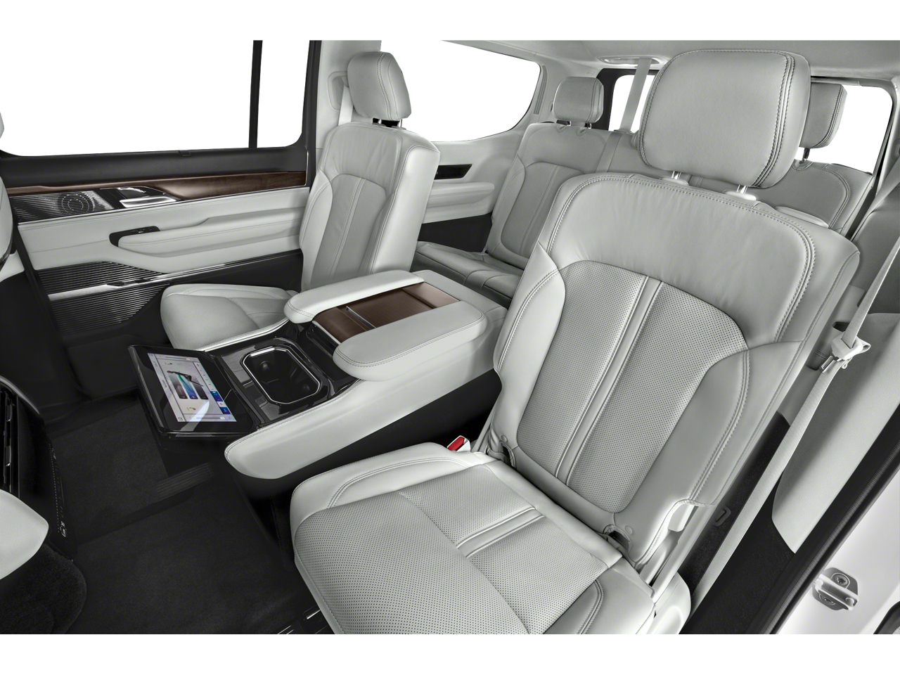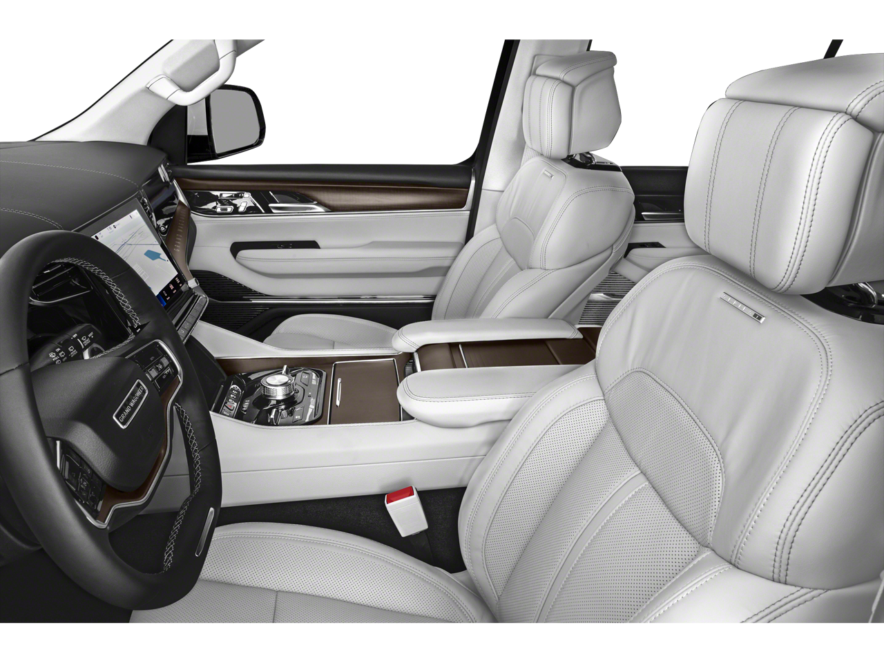 Equipped with Convenience Group III (Active Driving Assist System, Advanced Security Alert System, Interior Rear Facing Camera, Intersection Collision Assist System, and Night Vision/Pedestrian-Animal Detection), Obsidian Appearance Package, Quick Order Package 28T Obsidian (23 Speaker McIntosh Reference Audio System, Adjustable Roof Rail Crossbars, Black Interior Accents, Black Roof, Cargo Cover, Front Console Cooler, Front Passenger Interactive Display, Gloss Black Upper & Lower DLO Molding, Piano Black Exterior Accents, Premium Tinted Glass, Ventilated Rear Seats, and Wheels: 22 x 9.0 Tinted Polished w/Black Insert), Rear Seat Video Group 1 (Amazon Fire TV Built-In, Seatback Video Screens, and Video USB Port), Two Tone Paint Group, 19 Speakers, 3.92 Rear Axle Ratio, 3rd row seats: bench, 4-Wheel Disc Brakes, ABS brakes, Adjustable pedals, Air Conditioning, Alloy wheels, AM/FM radio: SiriusXM with 360L, Anti-whiplash front head restraints, Audio memory, Auto High-beam Headlights, Auto-dimming door mirrors, Auto-dimming Rear-View mirror, Auto-leveling suspension, Automatic temperature control, Brake assist, Bumpers: body-color, Compass, Delay-off headlights, Driver door bin, Driver vanity mirror, Driver's Seat Mounted Armrest, Dual front impact airbags, Dual front side impact airbags, Electronic Stability Control, Emergency communication system: Automatic SOS Call, Four wheel independent suspension, Front anti-roll bar, Front Bucket Seats, Front Center Armrest w/Storage, Front dual zone A/C, Front fog lights, Front reading lights, Fully automatic headlights, Garage door transmitter, Genuine wood console insert, Genuine wood dashboard insert, Genuine wood door panel insert, Heads-Up Display, Heated door mirrors, Heated front seats, Heated rear seats, Heated steering wheel, Illuminated entry, Knee airbag, Leather steering wheel, Leather Trimmed Bucket Seats, Low tire pressure warning, Memory seat, Navigation System, Normal Duty Suspension, Occupant sensing airbag, Outside temperature display, Overhead airbag, Overhead console, Panic alarm, Passenger door bin, Passenger seat mounted armrest, Passenger vanity mirror, Pedal memory, Power adjustable front head restraints, Power door mirrors, Power driver seat, Power Liftgate, Power moonroof, Power passenger seat, Power steering, Power windows, Radio data system, Radio: Uconnect 5 Nav w/12.0 Display, Rain sensing wipers, Rear air conditioning, Rear anti-roll bar, Rear dual zone A/C, Rear reading lights, Rear seat center armrest, Rear window defroster, Rear window wiper, Reclining 3rd row seat, Remote keyless entry, Security system, Speed control, Speed-sensing steering, Speed-Sensitive Wipers, Split folding rear seat, Steering wheel memory, Steering wheel mounted audio controls, Tachometer, Telescoping steering wheel, Tilt steering wheel, Traction control, Trip computer, Turn signal indicator mirrors, Variably intermittent wipers, Ventilated front seats, Voltmeter, and Wheels: 22 x 9.0 Premium 1 Aluminum.