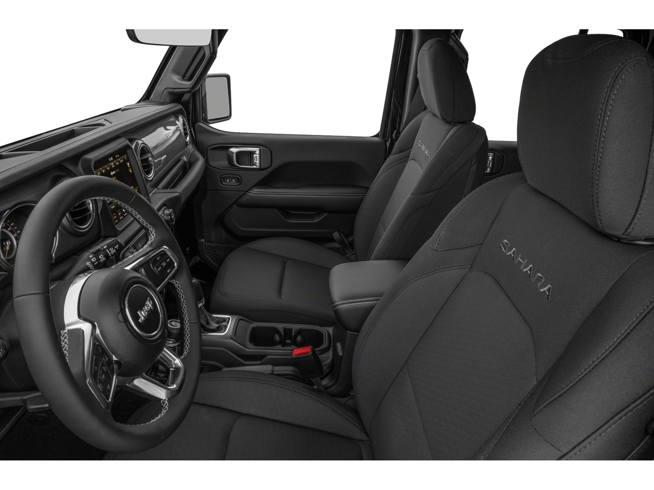 Inside, the Wrangler Sahara offers a well-appointed cabin with high-quality materials and thoughtful touches. The spacious interior and versatile cargo area provide ample room for passengers and gear, making this Jeep the perfect companion for your next outdoor excursion or family road trip.