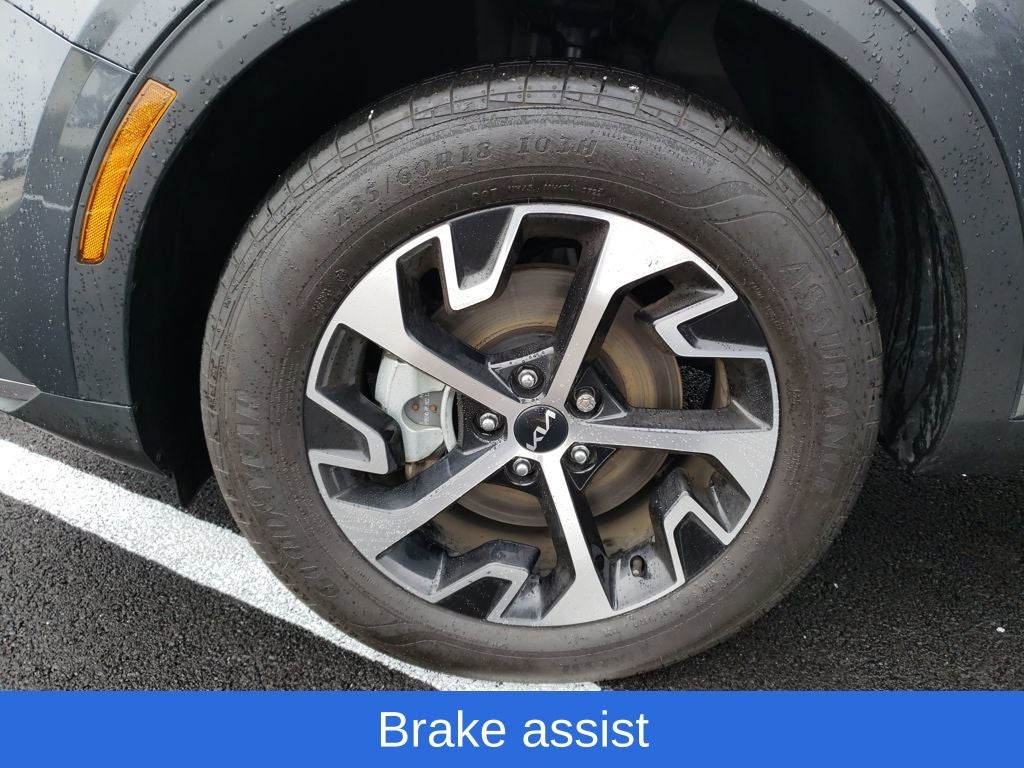Gravity Gray 2023 Kia Sportage Hybrid EX AWD 6-Speed Automatic 1.6L Turbo GDI 4-Cylinder 1.6L Turbo GDI 4-Cylinder, 4-Wheel Disc Brakes, 6 Speakers, ABS brakes, Air Conditioning, Alloy wheels, AM/FM radio: SiriusXM, Apple CarPlay & Android Auto, Auto High-beam Headlights, Automatic temperature control, Axle Ratio: 3.32, Brake assist, Bumpers: body-color, Cargo Cover, Carpet Floor Mats, Compass, Delay-off headlights, Driver door bin, Driver vanity mirror, Dual front impact airbags, Dual front side impact airbags, EC Mirror w/HomeLink, Electronic Stability Control, Emergency communication system, Four wheel independent suspension, Front anti-roll bar, Front Bucket Seats, Front Center Armrest, Front dual zone A/C, Fully automatic headlights, Heated door mirrors, Heated Front Bucket Seats, Heated front seats, Heated steering wheel, Illuminated entry, Low tire pressure warning, Navigation System, Occupant sensing airbag, Outside temperature display, Overhead airbag, Overhead console, Panic alarm, Passenger door bin, Passenger vanity mirror, Power door mirrors, Power driver seat, Power steering, Power windows, Radio: AM/FM/HD Audio System, Rain sensing wipers, Rear anti-roll bar, Rear seat center armrest, Rear window defroster, Rear window wiper, Remote keyless entry, Security system, Speed control, Speed-sensing steering, Split folding rear seat, Spoiler, Steering wheel mounted audio controls, SynTex Leatherette Seat Trim, Tachometer, Telescoping steering wheel, Tilt steering wheel, Traction control, Trip computer, Turn signal indicator mirrors, Variably intermittent wipers, Wheel Locks, Wheels: 18 x 7.5J Machined Alloy.
