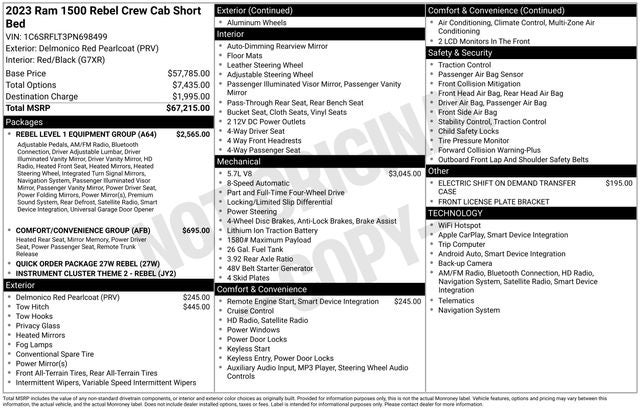 Step inside the 2023 Ram 1500 Rebel and experience the pinnacle of comfort and convenience. The Comfort/Convenience Group offers a host of premium amenities, including heated front and rear seats, a heated steering wheel, and power-adjustable pedals. The 12 Uconnect 5 infotainment system with built-in navigation and a 9-speaker premium audio system will keep you connected and entertained on every journey.