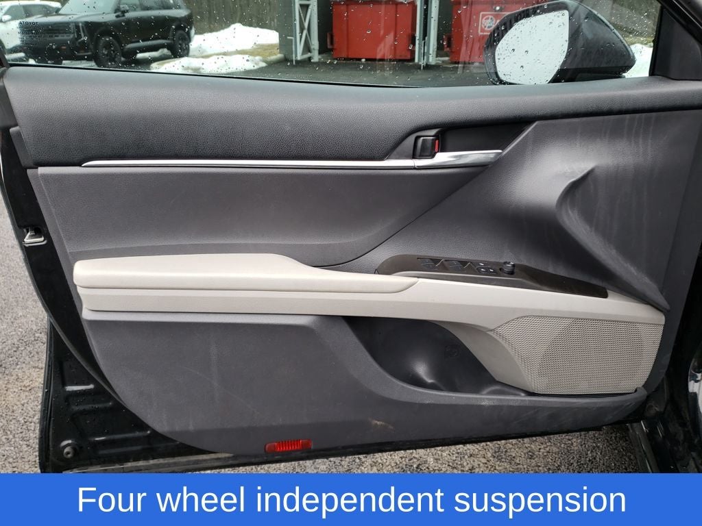 Midnight Black Metallic 2023 Toyota Camry SE FWD 8-Speed Automatic 2.5L I4 DOHC 16V 4D Sedan, 2.5L I4 DOHC 16V, 8-Speed Automatic, FWD, Black w/Perforated Leather Seat Trim, 4-Wheel Disc Brakes, 6 Speakers, 8.0J x 18 Alloy Wheels, ABS brakes, Active Cruise Control, Air Conditioning, Alloy wheels, AM/FM radio: SiriusXM, Apple CarPlay/Android Auto, Auto High-beam Headlights, Automatic temperature control, Brake assist, Bumpers: body-color, Delay-off headlights, Driver door bin, Driver vanity mirror, Dual front impact airbags, Dual front side impact airbags, Electronic Stability Control, Emergency communication system: Safety Connect (1-year trial), Exterior Parking Camera Rear, Four wheel independent suspension, Front anti-roll bar, Front Bucket Seats, Front Center Armrest, Front dual zone A/C, Front reading lights, Fully automatic headlights, Heated door mirrors, Illuminated entry, Knee airbag, Leather steering wheel, Low tire pressure warning, Occupant sensing airbag, Outside temperature display, Overhead airbag, Overhead console, Panic alarm, Passenger door bin, Passenger vanity mirror, Power door mirrors, Power driver seat, Power steering, Power windows, Radio data system, Radio: Audio, Rear anti-roll bar, Rear seat center armrest, Rear side impact airbag, Rear window defroster, Remote keyless entry, Security system, Speed control, Speed-sensing steering, Split folding rear seat, Spoiler, Sport SofTex Seat Trim w/Fabric Inserts, Steering wheel mounted audio controls, Tachometer, Telescoping steering wheel, Tilt steering wheel, Traction control, Trip computer, Turn signal indicator mirrors, Variably intermittent wipers.