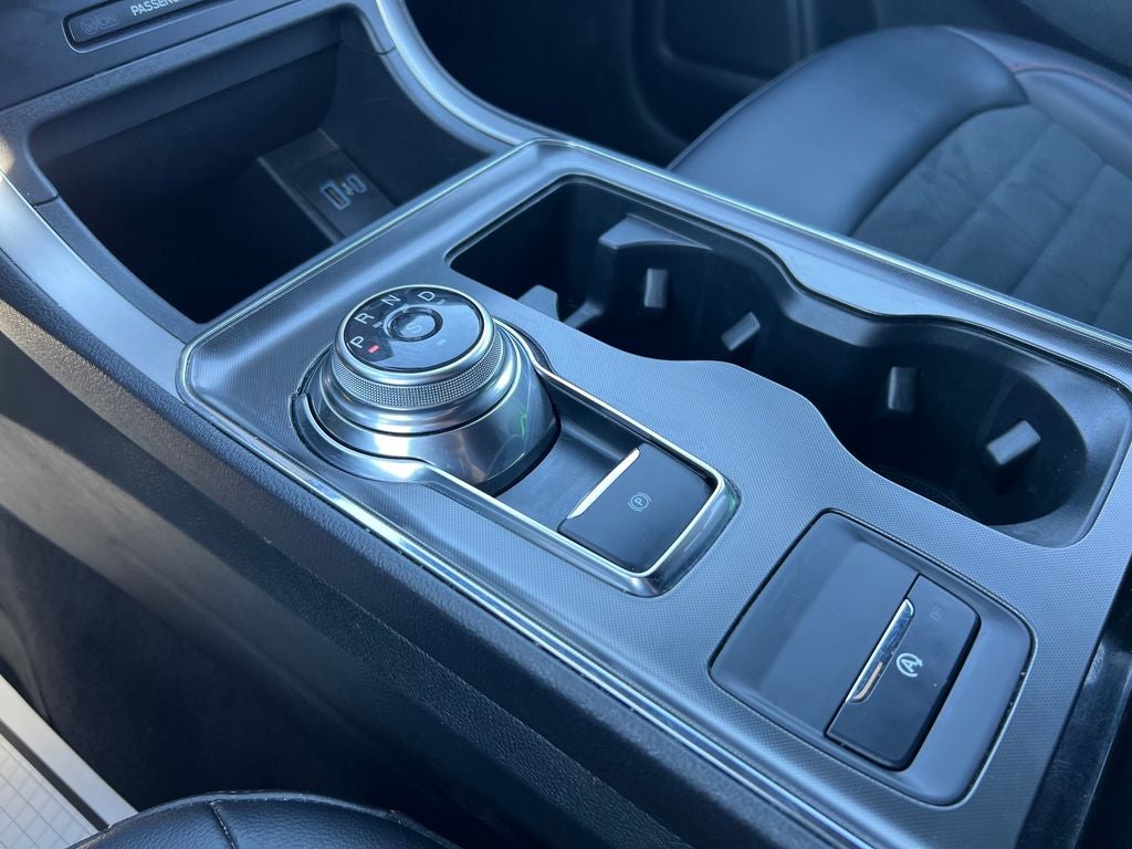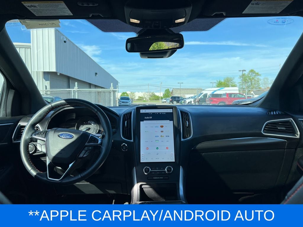 Beyond the impressive list of custom features, this Edge ST Line also comes equipped with a panoramic vista roof, a heated steering wheel, and premium gloss black-painted aluminum wheels, adding a touch of sophistication and style.