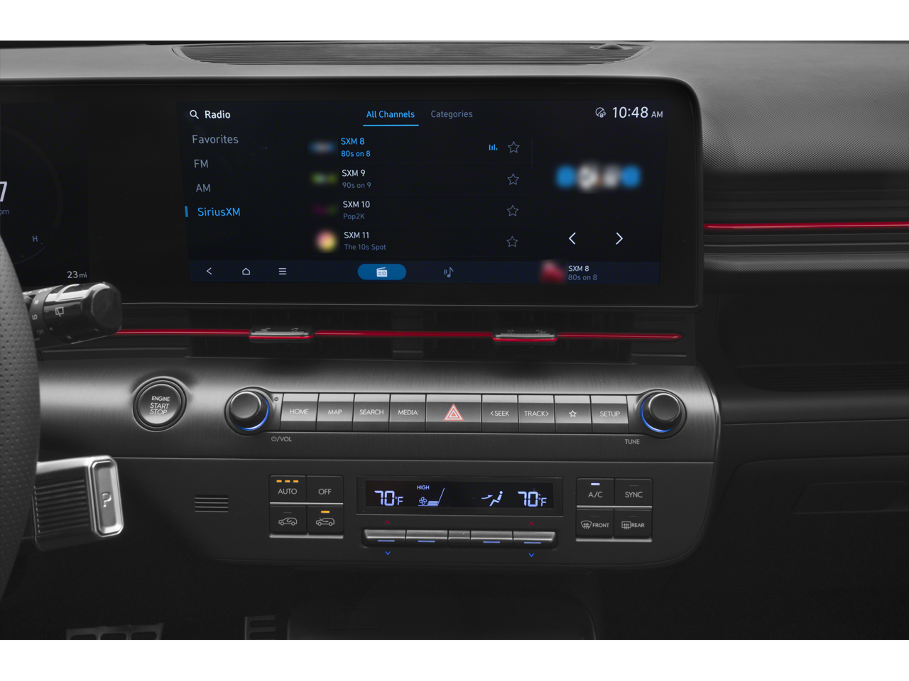- Radio: AM/FM/HD Radio/SiriusXM Audio System -inc: Bose premium audio system w/external amp, 8 speakers, 12.3" touchscreen audio display, navigation, Bluetooth®, Android Auto and Apple CarPlay compatibility (wired), dynamic voice recognition, Bluelink connected car system, OTA software updates and USB connectivity