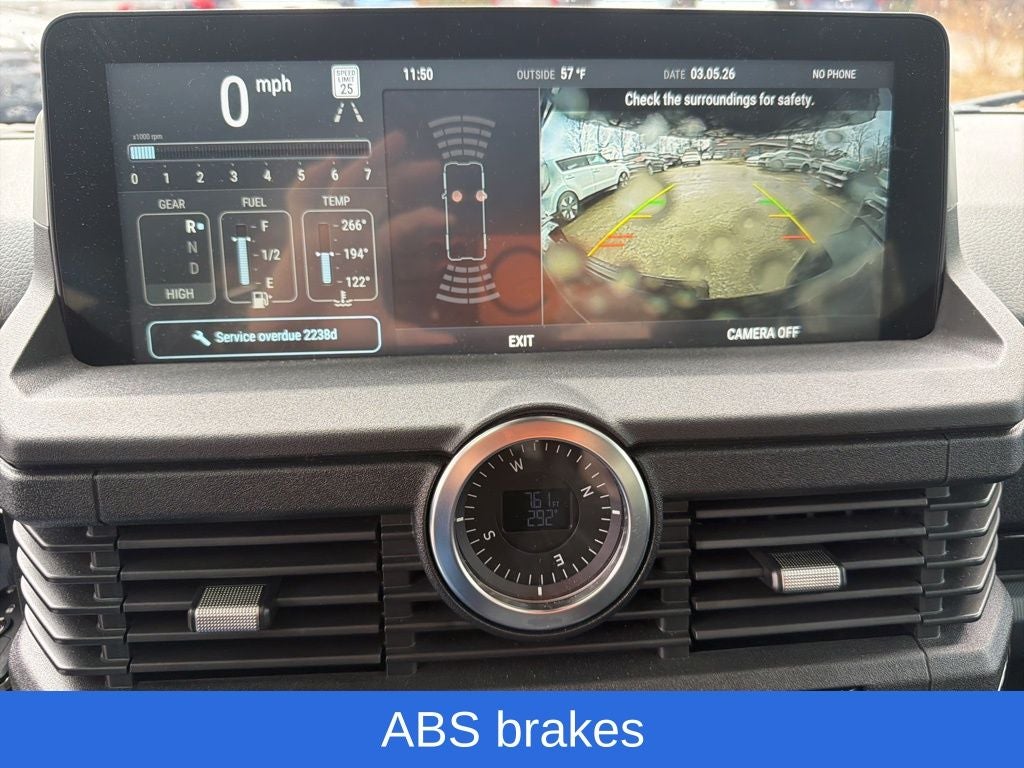 Equipped with ABS brakes, Alloy wheels, Compass, Electronic Stability Control, Heated door mirrors, Heated Front Bucket Seats, Heated front seats, Illuminated entry, Leather Seat Trim, Low tire pressure warning, Navigation System, Remote keyless entry, Traction control, 18 Alloy Wheels, 4 Speakers, 4-Wheel Disc Brakes, Air Conditioning, AM/FM radio, Anti-whiplash front head restraints, Auto High-beam Headlights, Automatic temperature control, Bodyside moldings, Bumpers: body-color, Driver door bin, Dual front impact airbags, Dual front side impact airbags, Exterior Parking Camera Rear, Front anti-roll bar, Front Bucket Seats, Front Center Armrest, Front reading lights, Knee airbag, Leather steering wheel, Occupant sensing airbag, Outside temperature display, Overhead airbag, Overhead console, Panic alarm, Passenger door bin, Power door mirrors, Power steering, Power windows, Radio: Central Control System w/Navigation, Rear anti-roll bar, Rear fog lights, Rear window defroster, Rear window wiper, Security system, Speed control, Speed-sensing steering, Split folding rear seat, Steering wheel mounted audio controls, Tachometer, TBD Axle Ratio, Telescoping steering wheel, Tilt steering wheel, Trip computer, and Variably intermittent wipers.