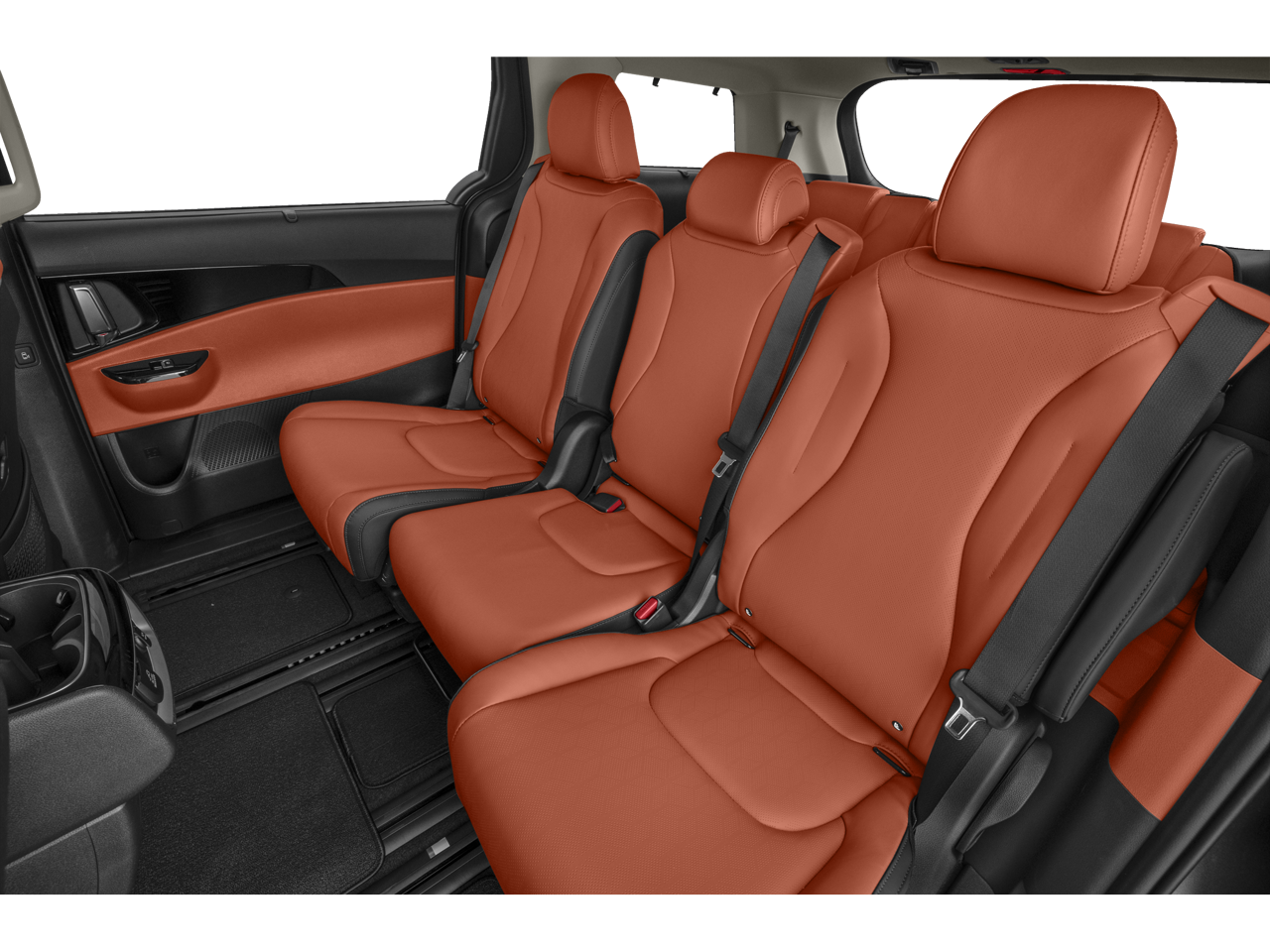 Equipped with Rear Seat Entertainment Package (Dual Screen Rear Seat Entertainment System), 3.51 Axle Ratio, 3rd row seats: split-bench, 4-Wheel Disc Brakes, ABS brakes, Air Conditioning, Alloy wheels, AM/FM radio: SiriusXM, Apple CarPlay & Android Auto, Auto High-beam Headlights, Automatic temperature control, Brake assist, Bumpers: body-color, Carpeted Floor Mats (8-Passenger), Compass, Delay-off headlights, Driver door bin, Driver vanity mirror, Dual front impact airbags, Dual front side impact airbags, Electronic Stability Control, Emergency communication system, Exterior Parking Camera Rear, Four wheel independent suspension, Front anti-roll bar, Front Bucket Seats, Front Center Armrest, Front dual zone A/C, Front fog lights, Front reading lights, Fully automatic headlights, Heated & Ventilated Front Bucket Seats, Heated door mirrors, Heated front seats, Illuminated entry, Knee airbag, Leather Shift Knob, Leather steering wheel, Low tire pressure warning, Memory seat, Navigation System, Occupant sensing airbag, Outside temperature display, Overhead airbag, Overhead console, Panic alarm, Passenger door bin, Passenger vanity mirror, Power door mirrors, Power driver seat, Power Liftgate, Power passenger seat, Power steering, Power windows, Radio: AM/FM/HD Audio System, Rear air conditioning, Rear anti-roll bar, Rear reading lights, Rear window defroster, Rear window wiper, Reclining 3rd row seat, Remote keyless entry, Roof rack: rails only, Security system, Speed control, Speed-sensing steering, Split folding rear seat, Spoiler, Steering wheel mounted audio controls, Tachometer, Telescoping steering wheel, Tilt steering wheel, Traction control, Trip computer, Turn signal indicator mirrors, Variably intermittent wipers, Ventilated front seats, and Wheels: 7.5J x 19 Black Painted Alloy.
