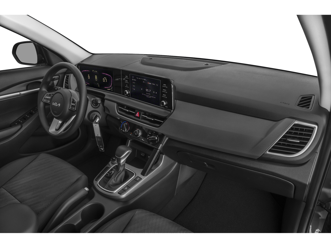 The interior of this Seltos LX is equally impressive, featuring a range of convenient and advanced technologies. Enjoy the convenience of Bluetooth® connectivity, a backup camera, and a host of safety features like automatic high-beam headlights and a security system. The spacious cabin offers ample room for passengers and cargo, with a split-folding rear seat and a reversible cargo mat/tray for added versatility.