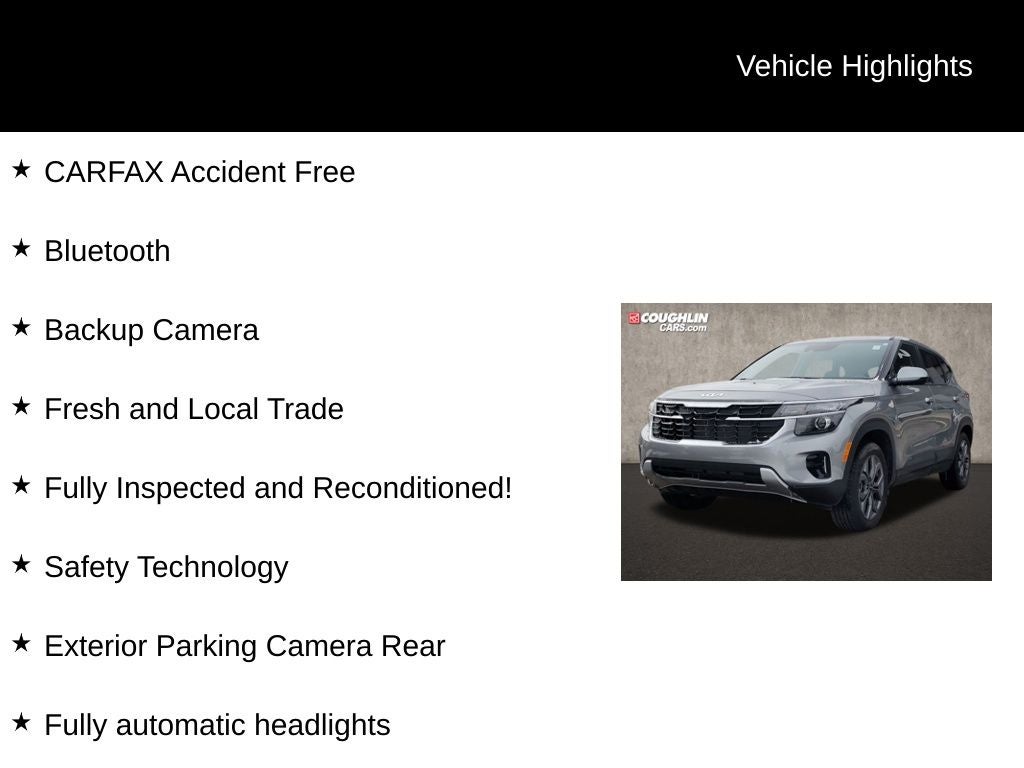 Under the hood, this Seltos LX is powered by a 2.0L I4 MPI engine, paired with a CVT transmission and AWD system. With an EPA-estimated 27 MPG in the city and 31 MPG on the highway, this crossover delivers impressive fuel efficiency to help you save at the pump.