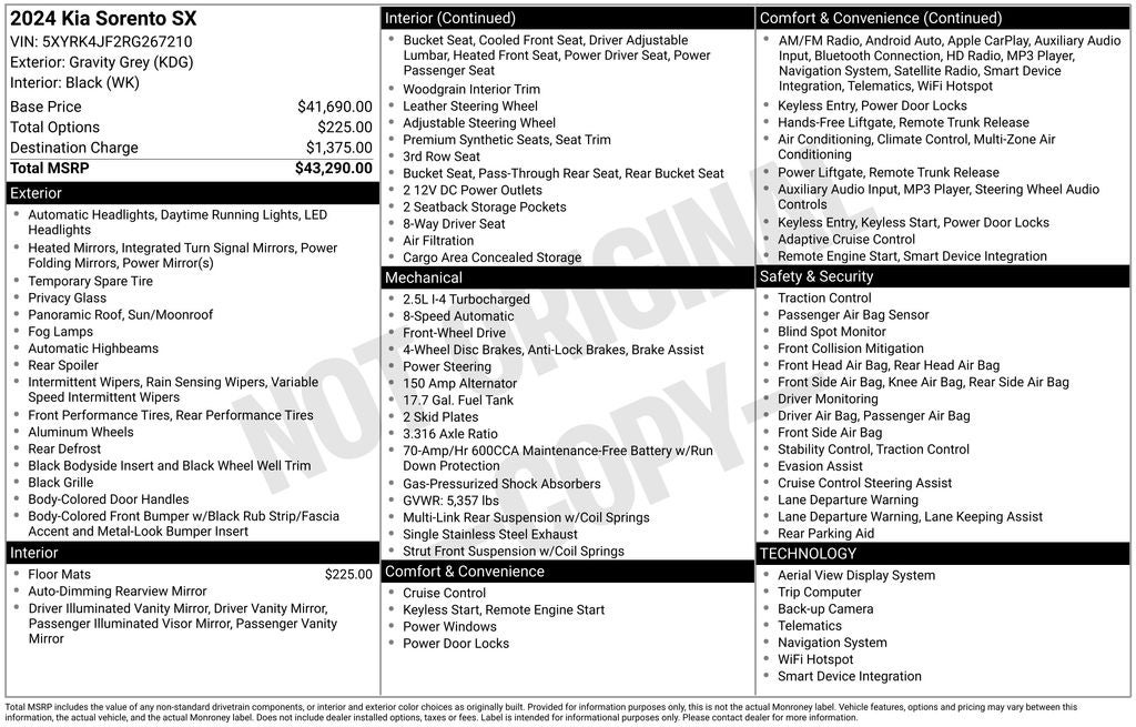 - Vehicle Name: Kia Sorento