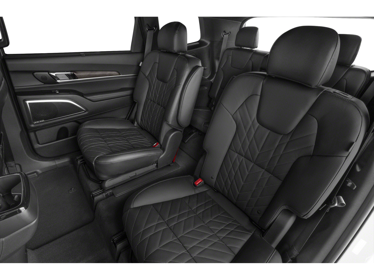 Equipped with Terracotta Interior Color Package, 10 Speakers, 3.648 Axle Ratio, 3rd row seats: split-bench, 4-Wheel Disc Brakes, ABS brakes, Air Conditioning, Alloy wheels, AM/FM radio: SiriusXM, Apple CarPlay & Android Auto, Auto High-beam Headlights, Auto-dimming Rear-View mirror, Auto-leveling suspension, Automatic temperature control, Brake assist, Bumpers: body-color, Carpet Floor Mats, Compass, Delay-off headlights, Driver door bin, Driver vanity mirror, Dual front impact airbags, Dual front side impact airbags, Electronic Stability Control, Emergency communication system: 911 Connect, Exterior Parking Camera Rear, Four wheel independent suspension, Front anti-roll bar, Front Bucket Seats, Front Center Armrest, Front dual zone A/C, Front fog lights, Front reading lights, Fully automatic headlights, Garage door transmitter: HomeLink, harman/kardon® Speakers, Heated & Ventilated Front Bucket Seats, Heated door mirrors, Heated front seats, Heated steering wheel, Illuminated entry, Knee airbag, Leather Seat Trim, Leather Shift Knob, Leather steering wheel, Low tire pressure warning, Memory seat, Navigation System, Occupant sensing airbag, Outside temperature display, Overhead airbag, Overhead console, Panic alarm, Passenger door bin, Passenger vanity mirror, Power door mirrors, Power driver seat, Power Liftgate, Power moonroof, Power passenger seat, Power steering, Power windows, Radio data system, Radio: AM/FM Harman Kardon Audio System, Rear air conditioning, Rear anti-roll bar, Rear audio controls, Rear reading lights, Rear side impact airbag, Rear window defroster, Rear window wiper, Reclining 3rd row seat, Remote keyless entry, Roof rack: rails only, Security system, Smart Key w/ Push Button and Remote Start, Speed control, Speed-sensing steering, Split folding rear seat, Spoiler, Steering wheel mounted audio controls, Tachometer, Telescoping steering wheel, Tilt steering wheel, Traction control, Trip computer, Turn signal indicator mirrors, Variably intermittent wipers, Ventilated front seats, and Wheels: 18 x 7.5 Black Finish X-PRO Exclusive.