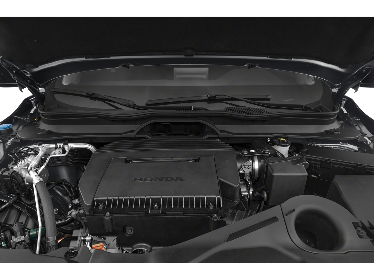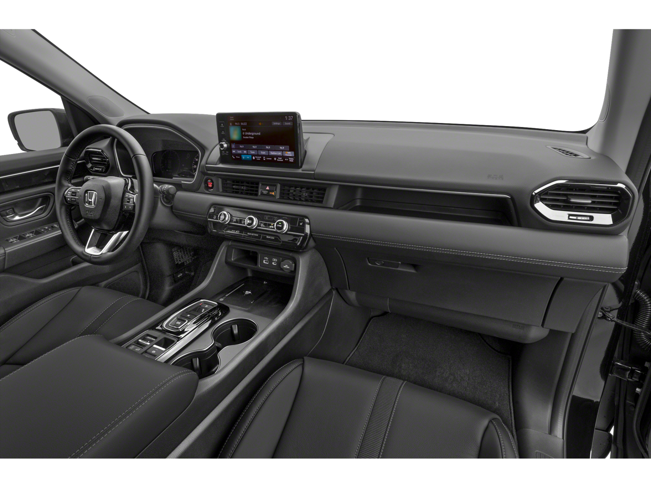 AWD, ABS brakes, Active Cruise Control, Alloy wheels, Electronic Stability Control, Front dual zone A/C, Heated door mirrors, Heated Front Bucket Seats, Heated front seats, Illuminated entry, Leather Seat Trim, Low tire pressure warning, Power Liftgate, Remote keyless entry, Traction control, 3rd row seats: split-bench, 4-Wheel Disc Brakes, 4.167 Axle Ratio, 9 Speakers, Adaptive Cruise Control: Adaptive Cruise Control (ACC) with Low-Speed Follow, Air Conditioning, AM/FM radio: SiriusXM, Apple CarPlay/Android Auto, Auto High-beam Headlights, Auto-dimming Rear-View mirror, Automatic temperature control, Blind Spot Information (BSI) System warning, Brake assist, Bumpers: body-color, Delay-off headlights, Driver door bin, Driver vanity mirror, Dual front impact airbags, Dual front side impact airbags, Emergency communication system: HondaLink Assist, Exterior Parking Camera Rear, Four wheel independent suspension, Front anti-roll bar, Front Bucket Seats, Front Center Armrest, Front fog lights, Front reading lights, Fully automatic headlights, Garage door transmitter: HomeLink, Knee airbag, Lane departure: Lane Keeping Assist System (LKAS) active, Memory seat, Occupant sensing airbag, Outside temperature display, Overhead airbag, Overhead console, Panic alarm, Passenger door bin, Passenger vanity mirror, Power door mirrors, Power driver seat, Power passenger seat, Power steering, Power windows, Radio data system, Radio: 245-Watt Audio System, Rear air conditioning, Rear anti-roll bar, Rear reading lights, Rear seat center armrest, Rear window defroster, Rear window wiper, Reclining 3rd row seat, Security system, SiriusXM, Speed control, Speed-sensing steering, Speed-Sensitive Wipers, Split folding rear seat, Spoiler, Steering wheel mounted audio controls, Tachometer, Telescoping steering wheel, Tilt steering wheel, Trip computer, Turn signal indicator mirrors, Variably intermittent wipers, and Wheels: 18 Pewter Gray Machined Face.